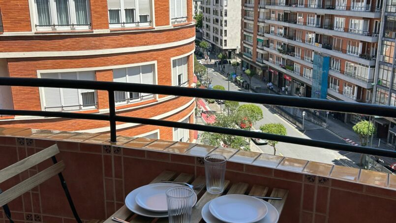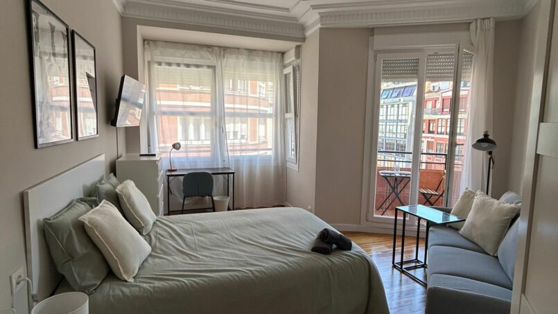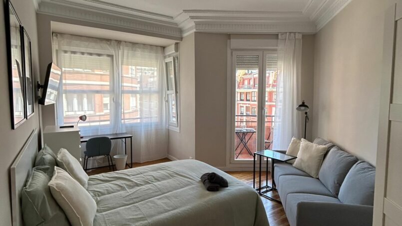 Habitación exterior con balcón en el centro de Bilbao.