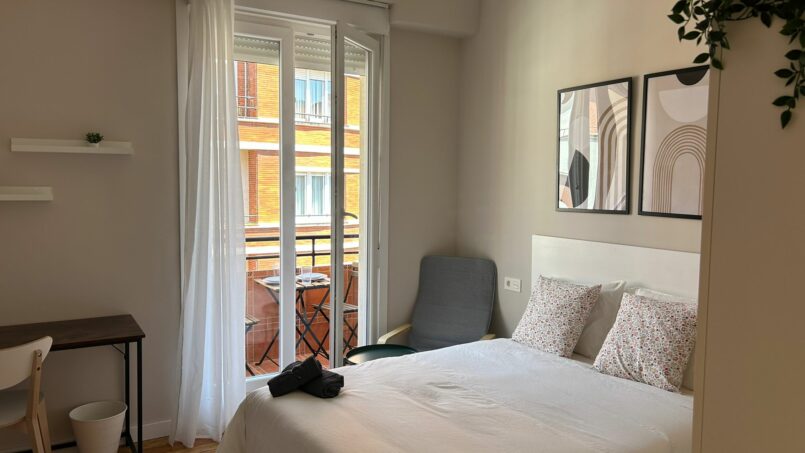Habitación exterior con balcón en el centro de Bilbao.