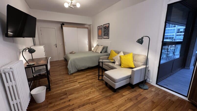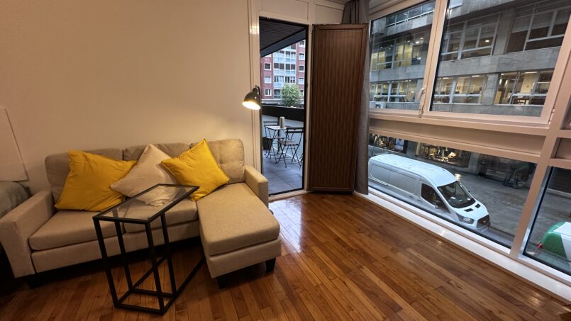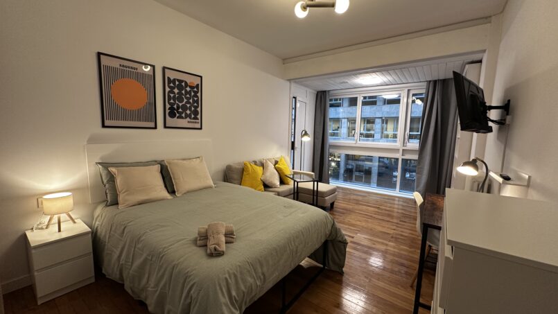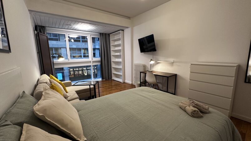 Habitación con terraza y zona de salón en el centro de Bilbao.