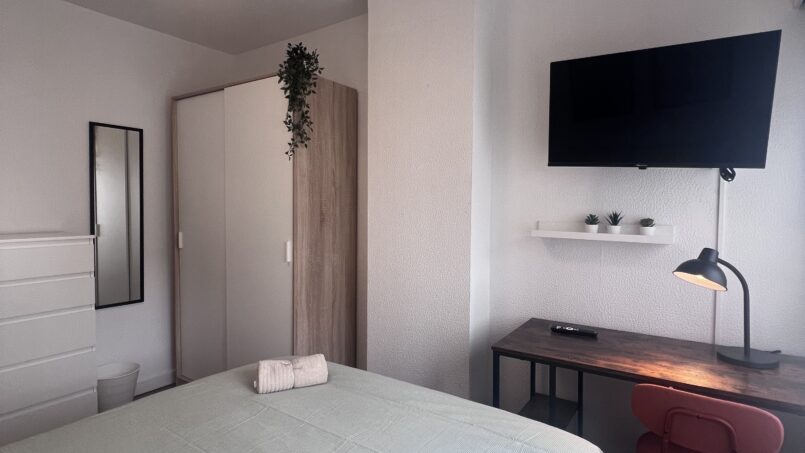 El ambiente tanto de la casa como de la comunidad vecinal es muy tranquilo. La habitación es luminosa, cuenta con ventana y está equipada con el siguiente mobiliario: