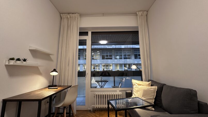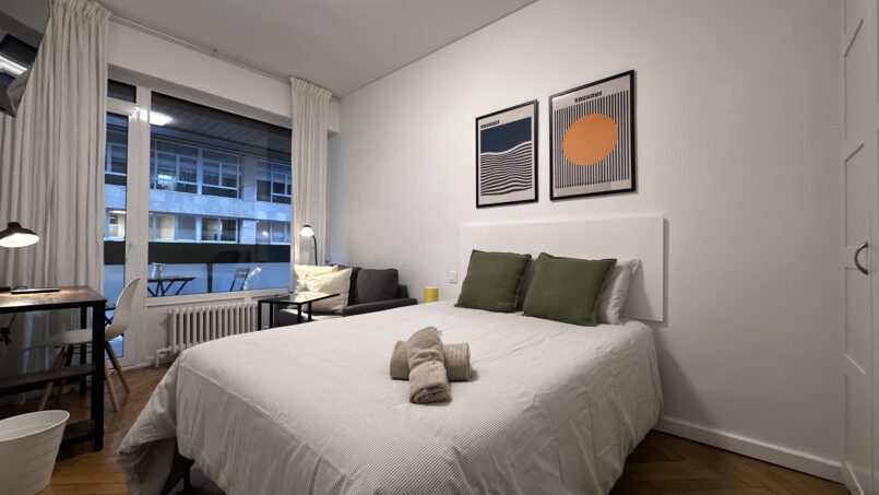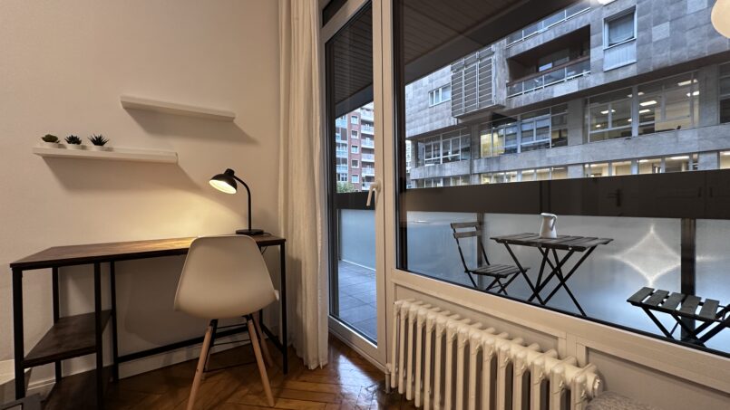 Habitación con terraza y zona de salón en el centro de Bilbao.